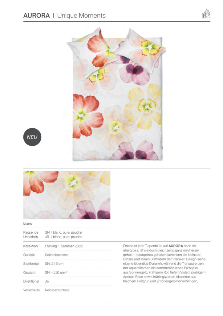 Die Garnituren sind jeweils bedruckt und in Satin-Noblesse erhältlich