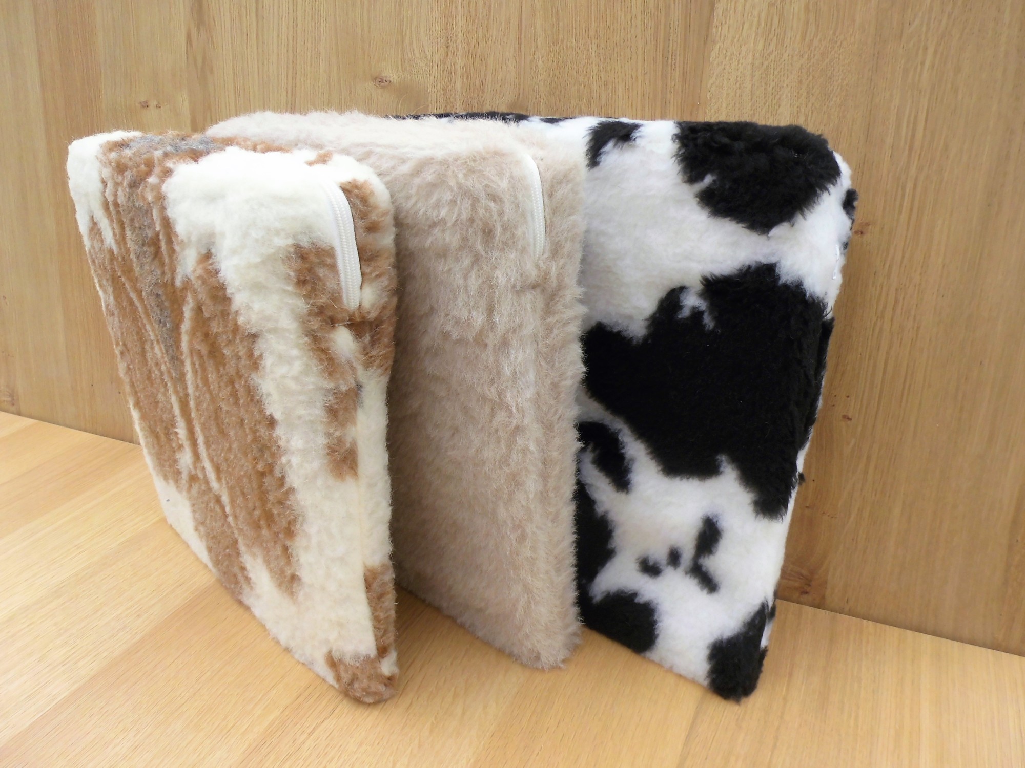 Bei der Hülle können Sie wählen aus 100% Lamahaar, 100% Merino-Wolle mit Butterfly Muster, dunkel braun, Carré Muster oder Kuhfell-Muster (Kunstfaser) bedruckt.