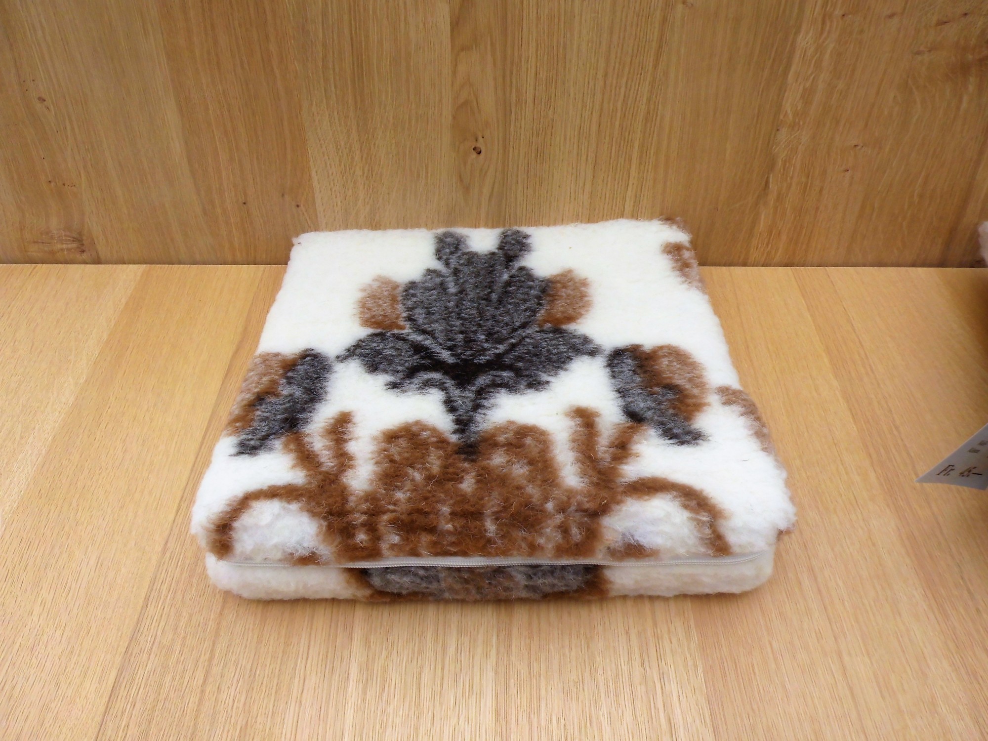 Pflege: Das Keilkissen darf auf Grund des natürlichen Fettgehalts in der Wolle nicht gewaschen werden. Flecken behandeln Sie am besten örtlich.